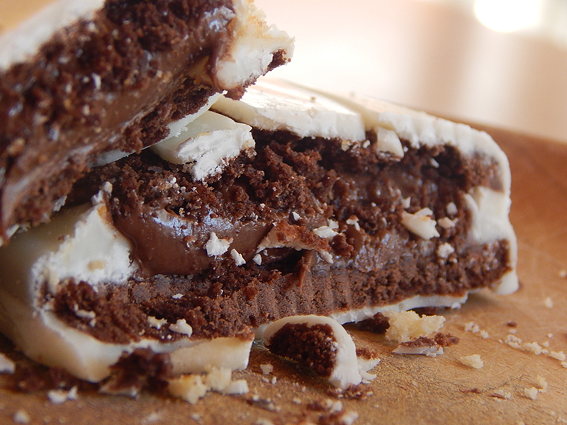 Alfajor de Brigadeiro, La Marsellesa[/caption] A contrapelo de estas variedades que nombramos, de origen más o menos fijo, rastreable en el mapa, el alfajor de nutela es un producto desterritorializado , hijo de la globalización antes que del telurismo. Tal vez por eso reviste ese carácterinforme, casi monstruoso , del sincretismo en su primer momento. No es que el alfajor de nutela no merezca nuestra aprobación, incluso nuestra devoción, perohabrá de ser una devoción rastrera la que le deparemos, más infernal que divina ; más como la libido que excita el Vauquita que el recogimiento contemplativo que convoca el Havanna. (Aunque los extremos se tocan). Un alfajor rebosante en testosterona, un adolescente expansivo. [caption id=”attachment_3983” align=”aligncenter” width=”800”]