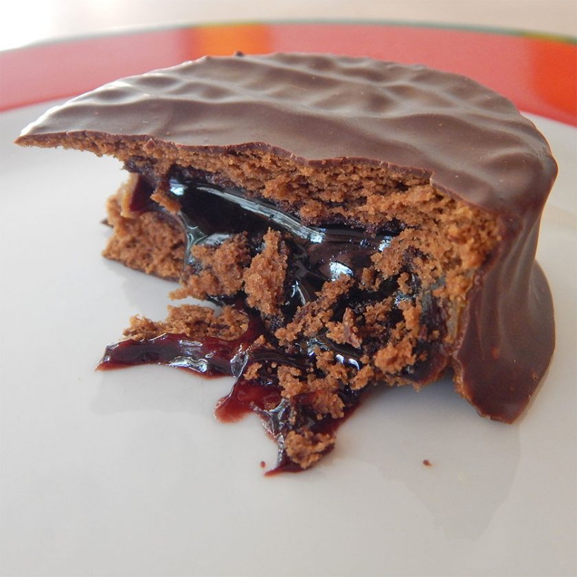 Desprevenido, creí al comienzo que el alfajor de La Goulue (pronúnciese guturalmente laguggglú , en francés) se incluía dentro de la nueva categoría de los “ alfajores con corazón ”, en la que el “corazón” propiamente dicho (generalmente de mermelada, o de jalea de cerveza, por ejemplo) hace su aparición en la mitad de la experiencia, cumpliendo un rol considerable pero no imprescindible para el sostenimiento de la totalidad: su supresión no haría desmoronar el edificio. En este caso es al revés. El alfajor no es más que un vehículo, una condición de posibilidad —literalmente, la estructura sólida requerida para transportar lo líquido; el envase de la botella—.Y como tal, sus detalles no revisten ninguna importancia: el chocolate, aunque rico, no destaca por ningún motivo (si es belga o no, apenas interesa, salvo para alimentar la farsa). El dulce de leche, lo mismo. La galleta no podría ser más trivial. El envoltorio es genérico. Lo que interesa es lo que no se ve: el jarabe espeso de vino malbec, que ocupa casi el 90% del espacio disponible.