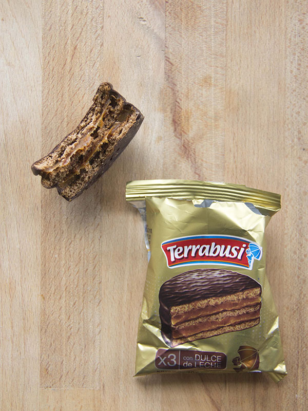 Terrabusi. Foto: unalfajorpordía (Instagram)[/caption] Si hay un aspecto en el que el Terrabusi arrasa, es en la cobertura. Es muy gruesa, amarga, bastante rica. Por supuesto que en ambos casos se trata de baño de repostería, pero en este caso está muy bien logrado, es uno de los mejores que probé. En cambio, en el Capitán del Espacio es más bien delgada y de las que hay que lengüetear un rato para extraerles algo de sabor, que finalmente encastra bastante bien en la esencia general, pero que per se es definitivamente malo. Esta clase de repostería, cuanto más fría está, peor es; por eso el otro día, con diez grados, me clavé un Capitán del Espacio y estaba tan feo. Ahora lo entiendo. En lo demás, el Terrabusi falla. Su mayor problema está en la masa: demasiado crujiente, demasiado sólida, demasiado presente. Se lleva toda la atención (that bitch) y opaca a todo lo demás, contrariamente a lo que indican los manuales del buen alfajor. Todo en el Terrabusi está como apretado, contenido; le falta aire y esponjosidad (de hecho, fíjense que a pesar de ser triple es mucho más bajito que el Capitán del Espacio). Y como escatima bastante en dulce de leche, el resultado final es pobre : uno no sabe si está comiendo un alfajor o algún híbrido extraño. [caption id=”attachment_3767” align=”aligncenter” width=”600”]